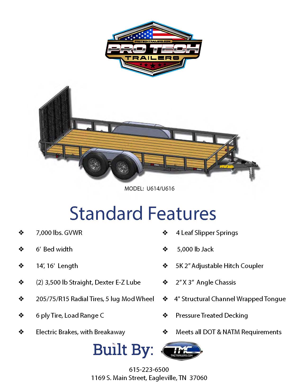 Our Protech 14′ trailer is the perfect transport solution for safely and efficiently moving your vehicles. Ideal for car enthusiasts, dealerships, and transport services, this trailer is designed to handle the needs of car transport with ease and reliability. Built with a strong frame and secure tie-down points, it ensures your vehicles are protected throughout their journey.