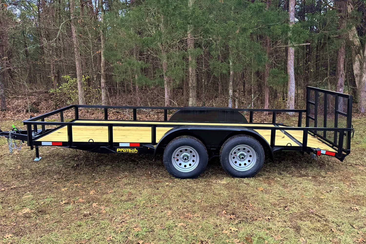 Our Protech 16’D trailer is the perfect transport solution for safely and efficiently moving your vehicles. Ideal for car enthusiasts, dealerships, and transport services, this trailer is designed to handle the needs of car transport with ease and reliability. Built with a strong frame and secure tie-down points, it ensures your vehicles are protected throughout their journey.